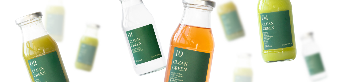 Програма Clean Green (детокс на соках) – це detox-програма із десяти напоїв: 8 зелених овочевих соків холодного віджиму, включаючи probiotic drink та аюрведичний чай.
