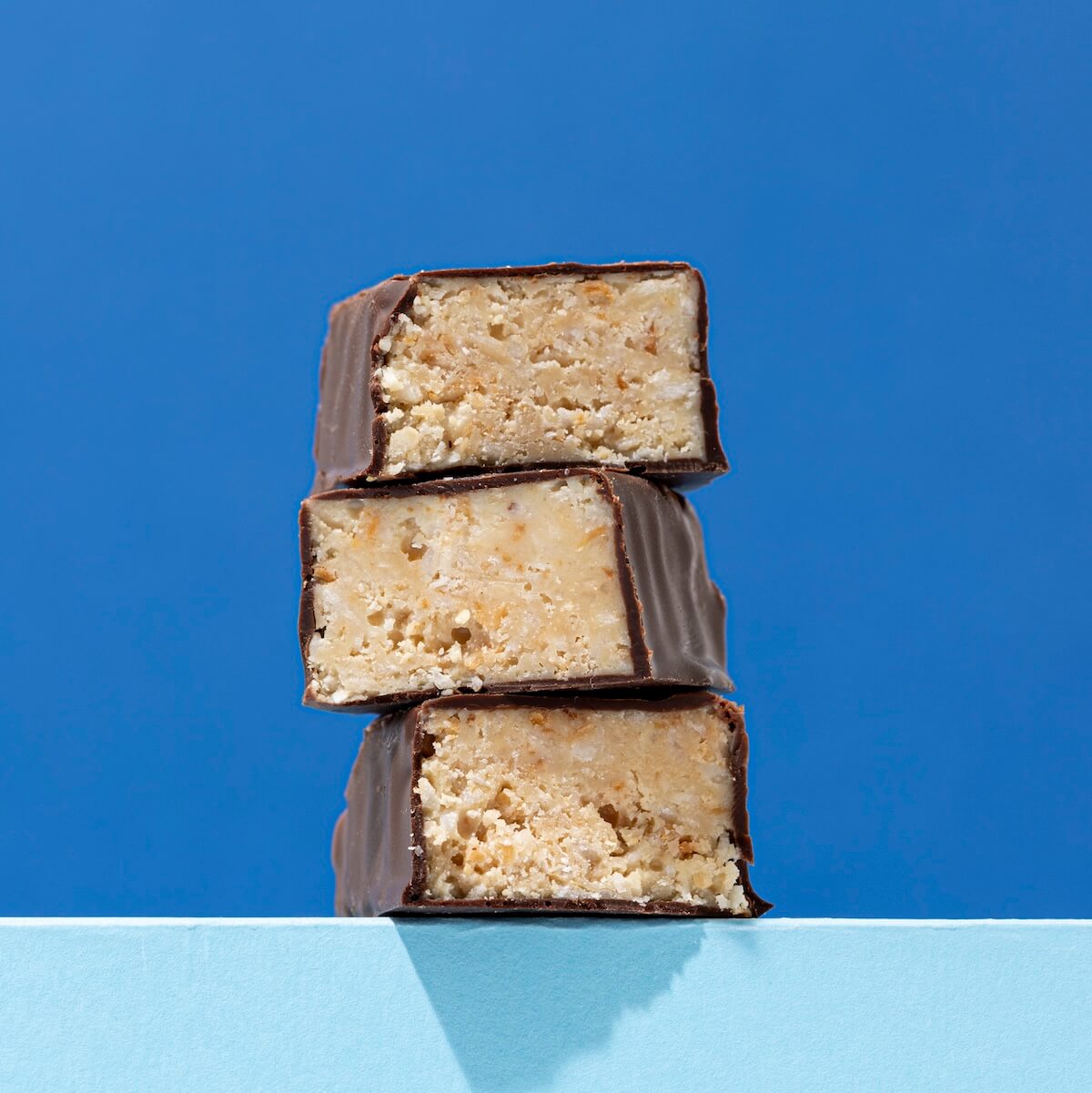 мякоть кокосового ореха высушенная измельченная 61%, темный шоколад (какао тертое, какао масло, подсластитель мальтитол, порошок какао обезжиренный, эмульгатор лецетин подсолнечный), протеин растительный (изолят горохового протеина 48%, концентрат коноплянного белка 10%) какао масло, сироп агавы.